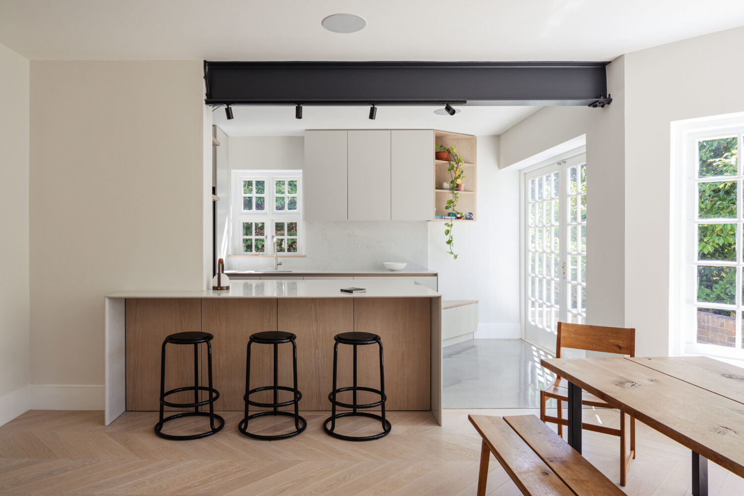 The Turned Side Table joints three legs into a round English ash top with neatly wedged tenons. The legs of the Turned Side Table are elegantly tapered and gently splayed.