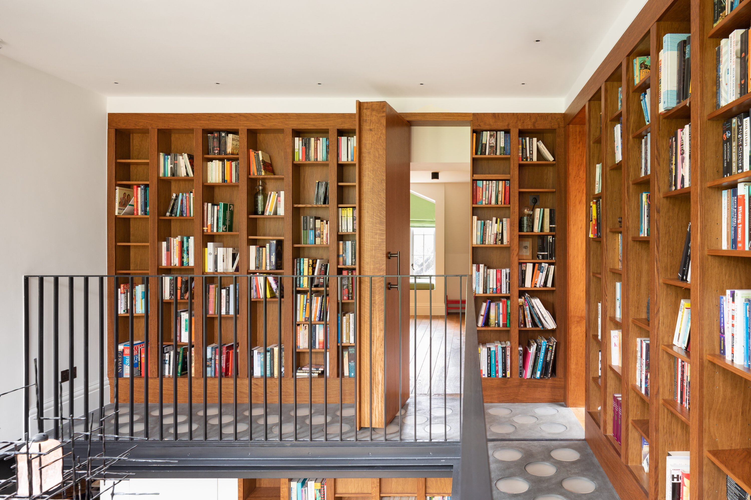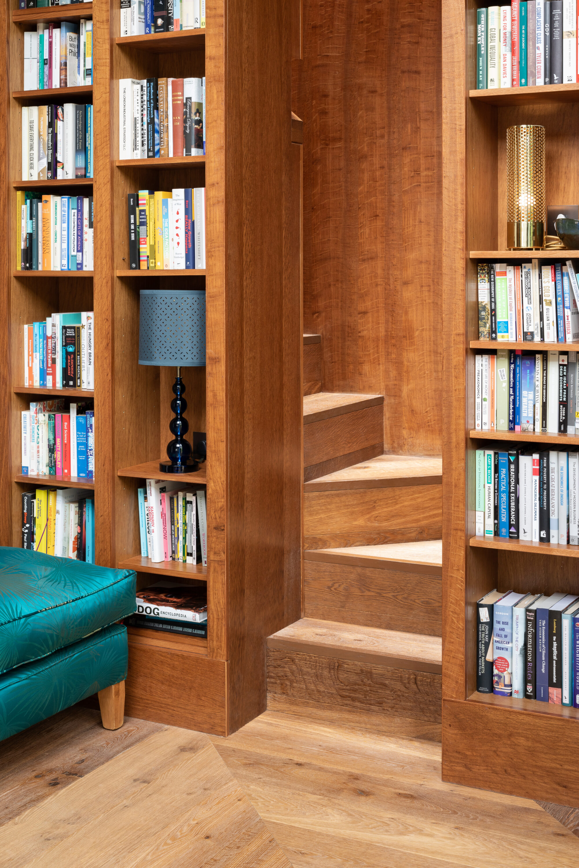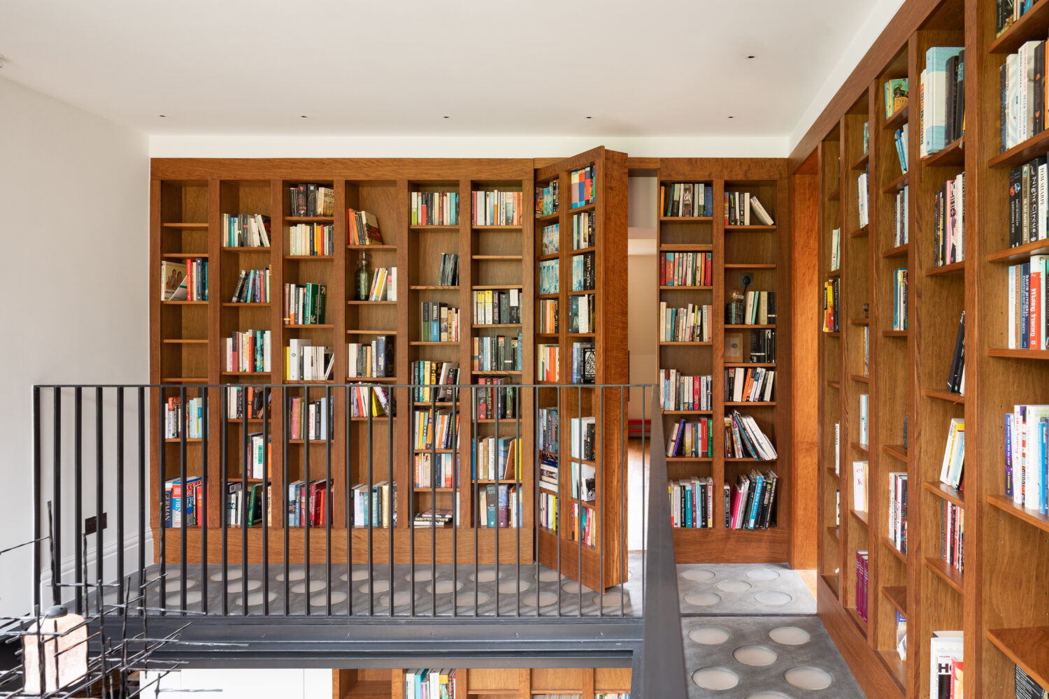 We undertook extensive work throughout The Cheshire House, an impressive detached family home in North London. This included wall panelling, boot room, utility, study, two-storey library, dressing rooms, staircases, sliding and hinged doors, and bathroom furniture and vanities. Working to an exciting brief, incorporating unique details and playful colour schemes, the resulting collection of joinery is an eclectic mix of styles that allowed us to let our creativity free and our technical ability shine.