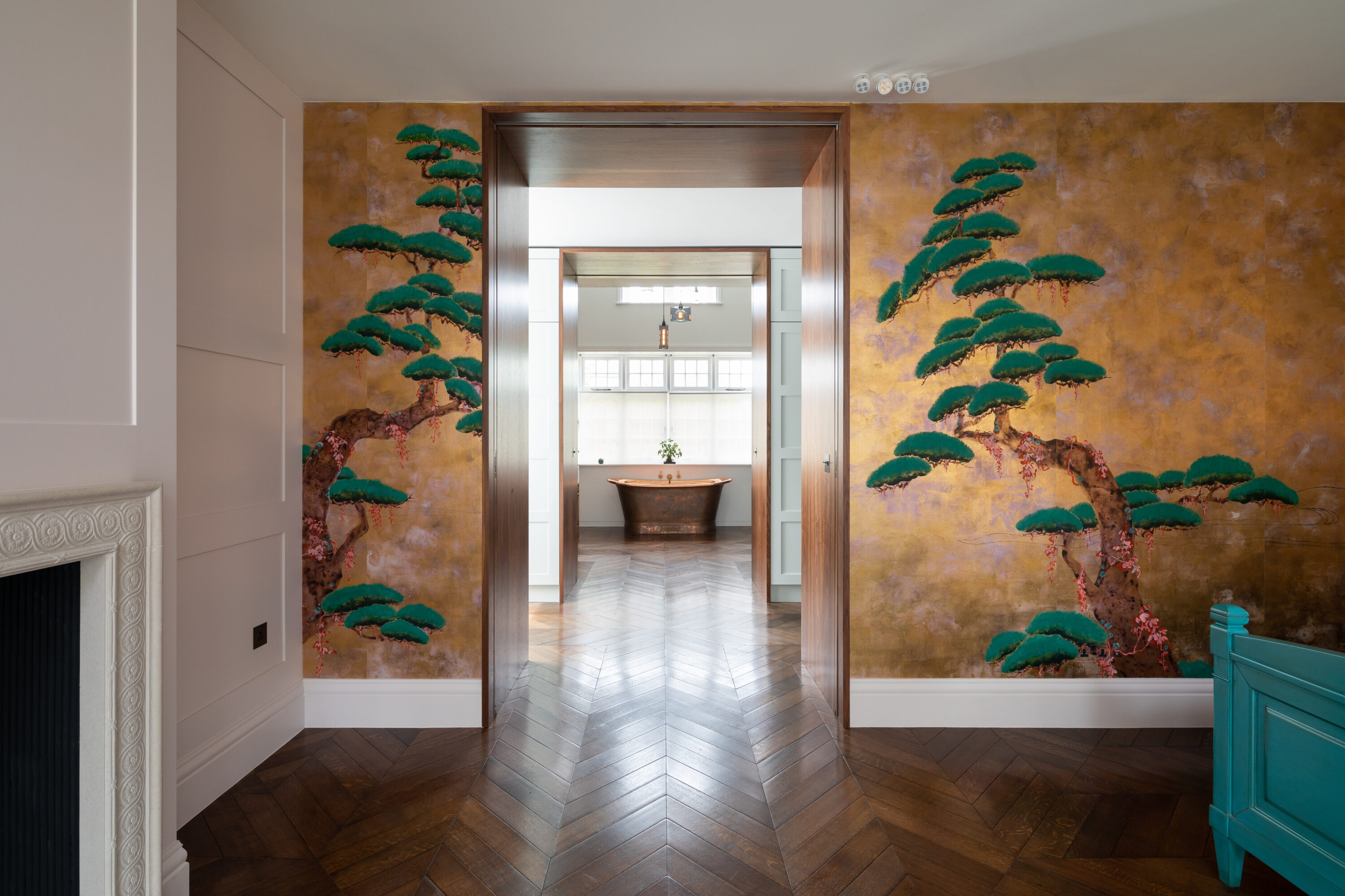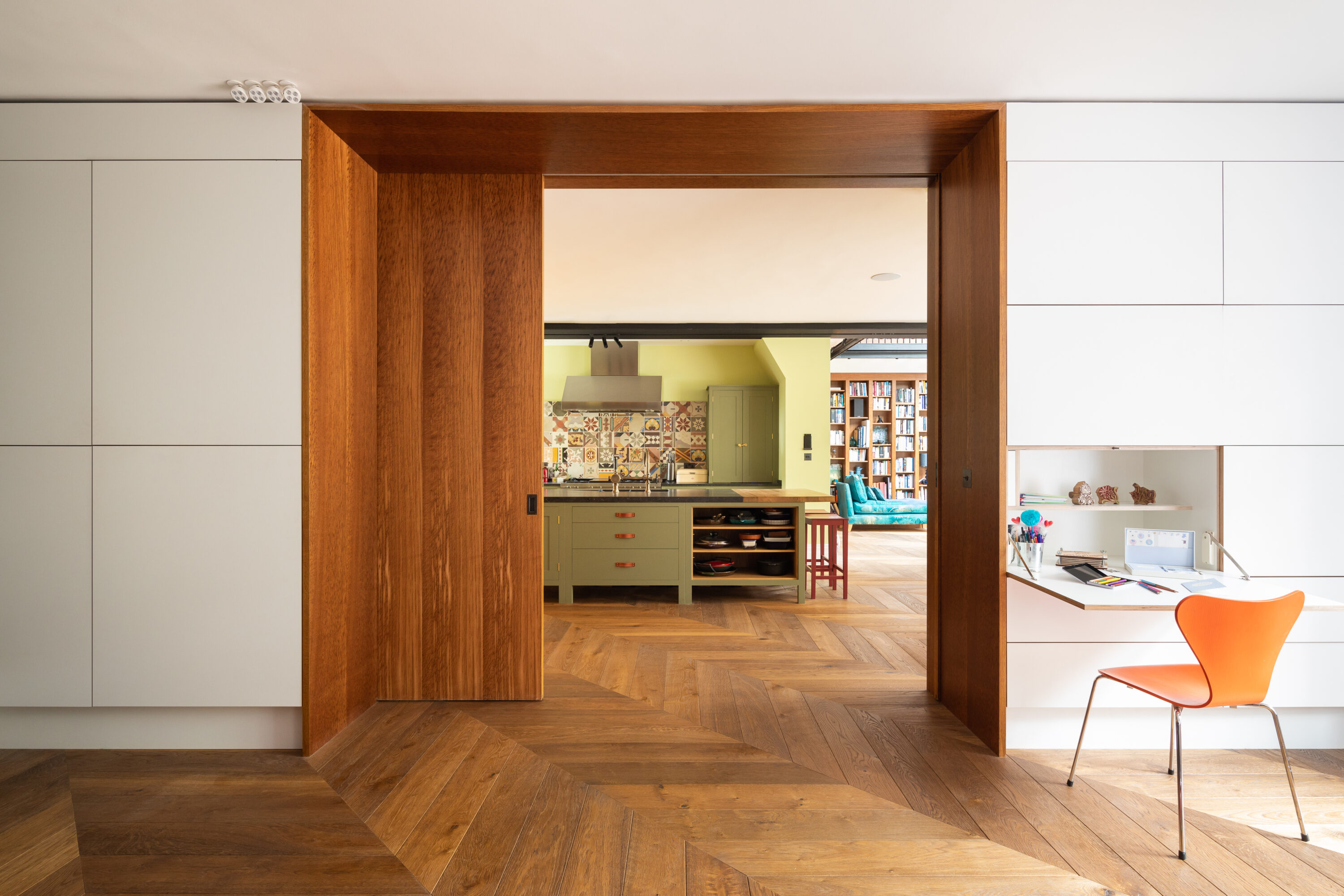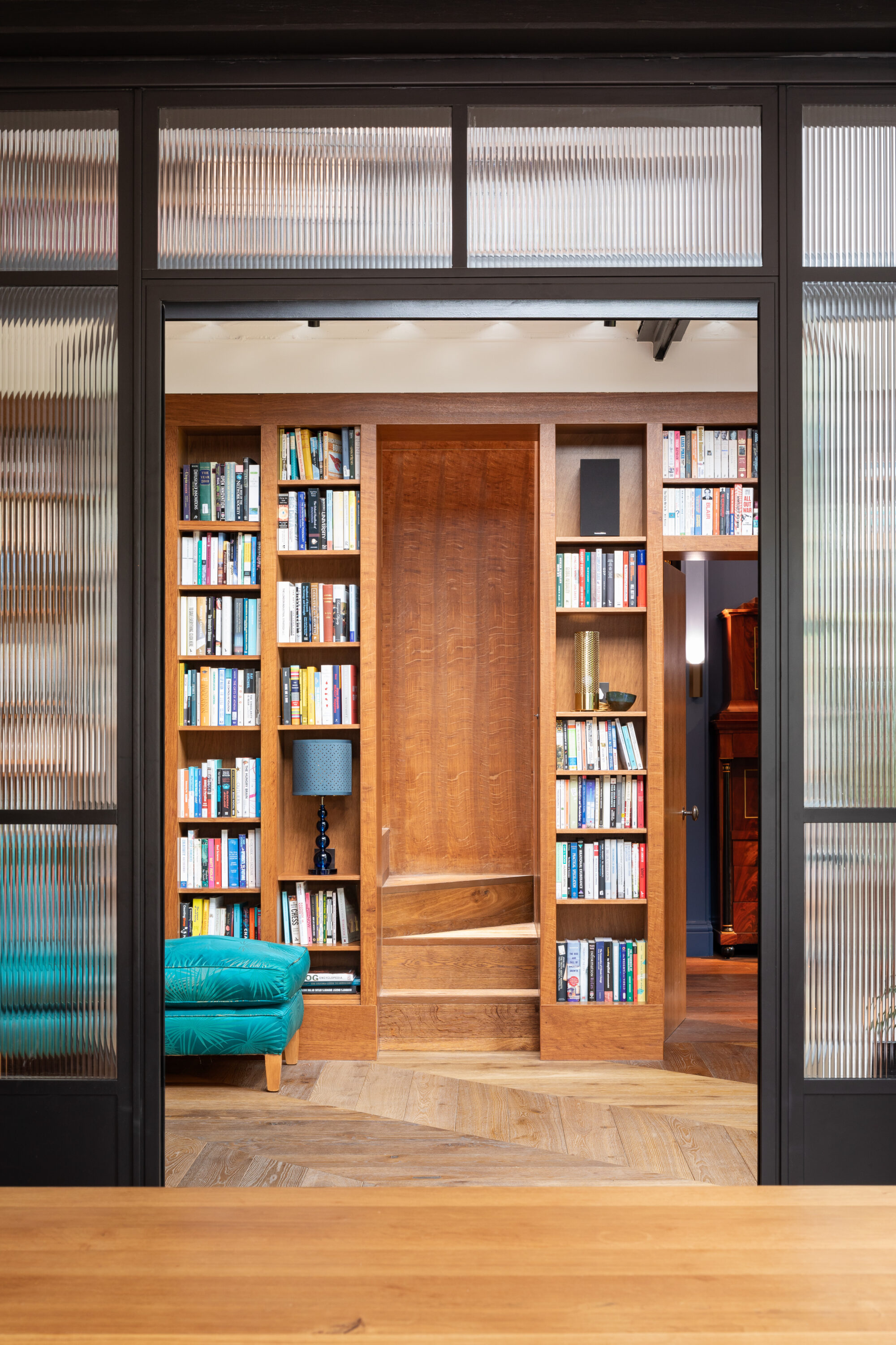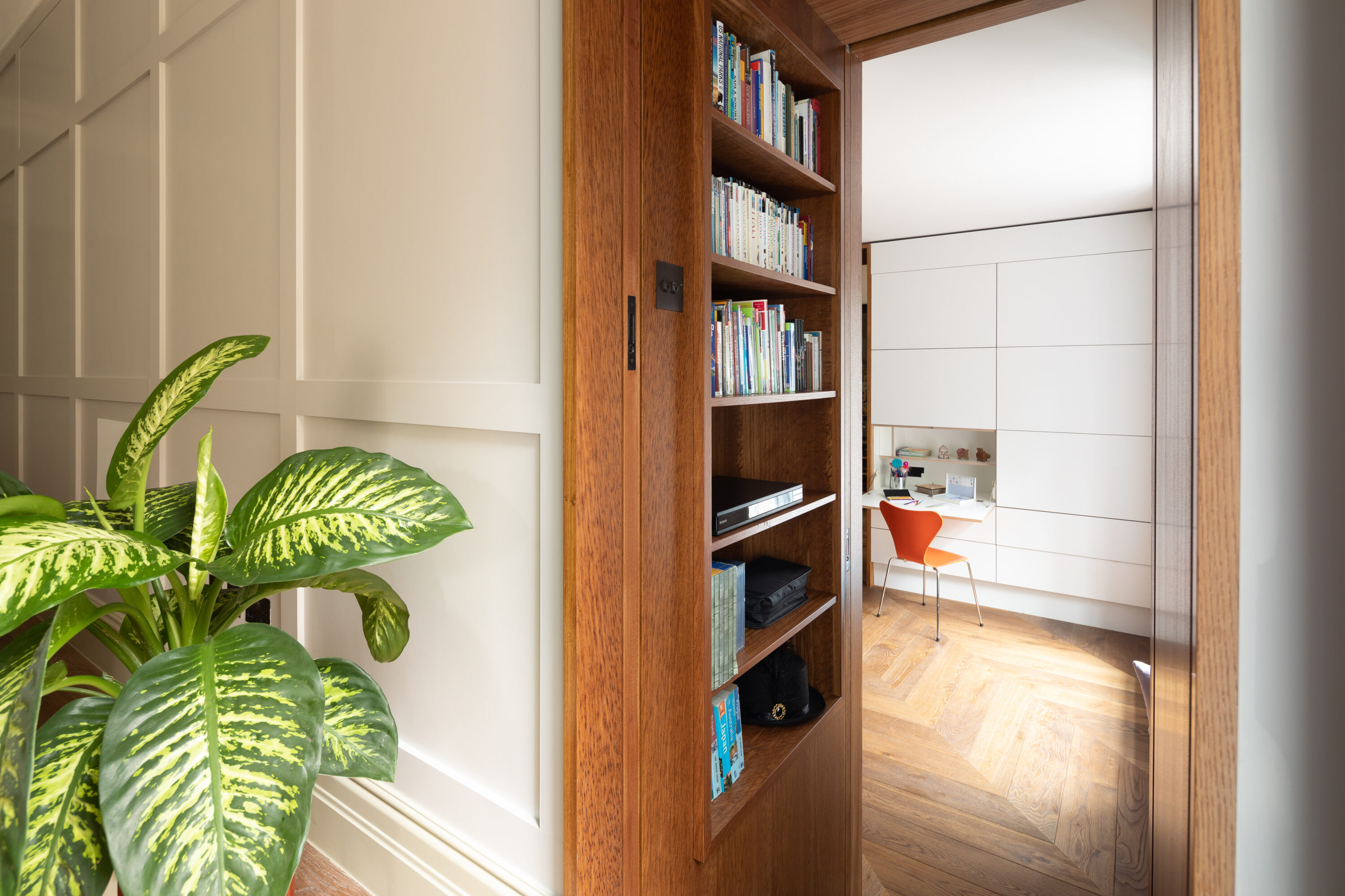 We undertook extensive work throughout The Cheshire House, an impressive detached family home in North London. This included wall panelling, boot room, utility, study, two-storey library, dressing rooms, staircases, sliding and hinged doors, and bathroom furniture and vanities. Working to an exciting brief, incorporating unique details and playful colour schemes, the resulting collection of joinery is an eclectic mix of styles that allowed us to let our creativity free and our technical ability shine.