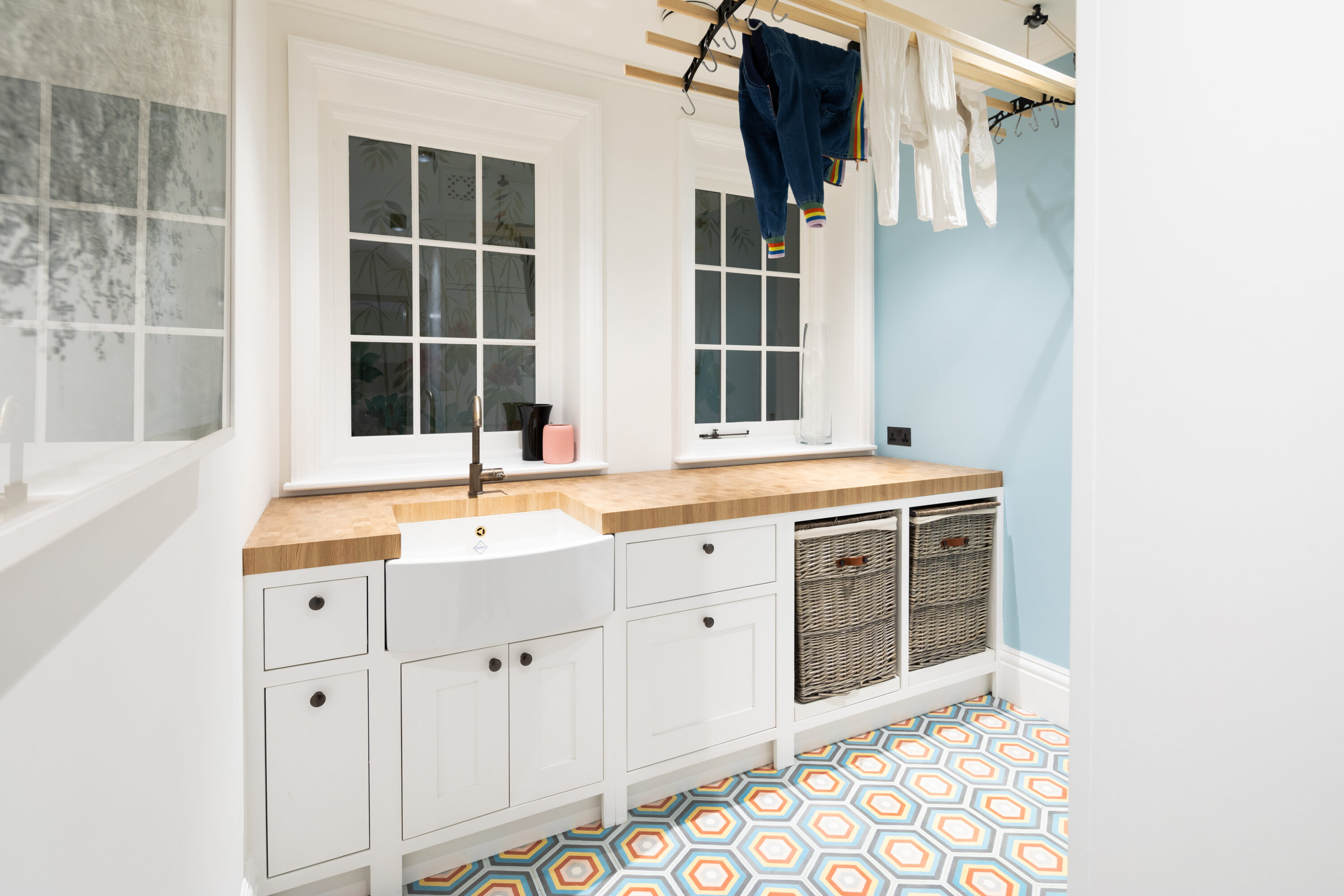 Elsewhere downstairs, a classic shaker style laundry room provides plenty of storage and the 60mm end grain Oak Butcher Block offers a robust and beautiful work surface.