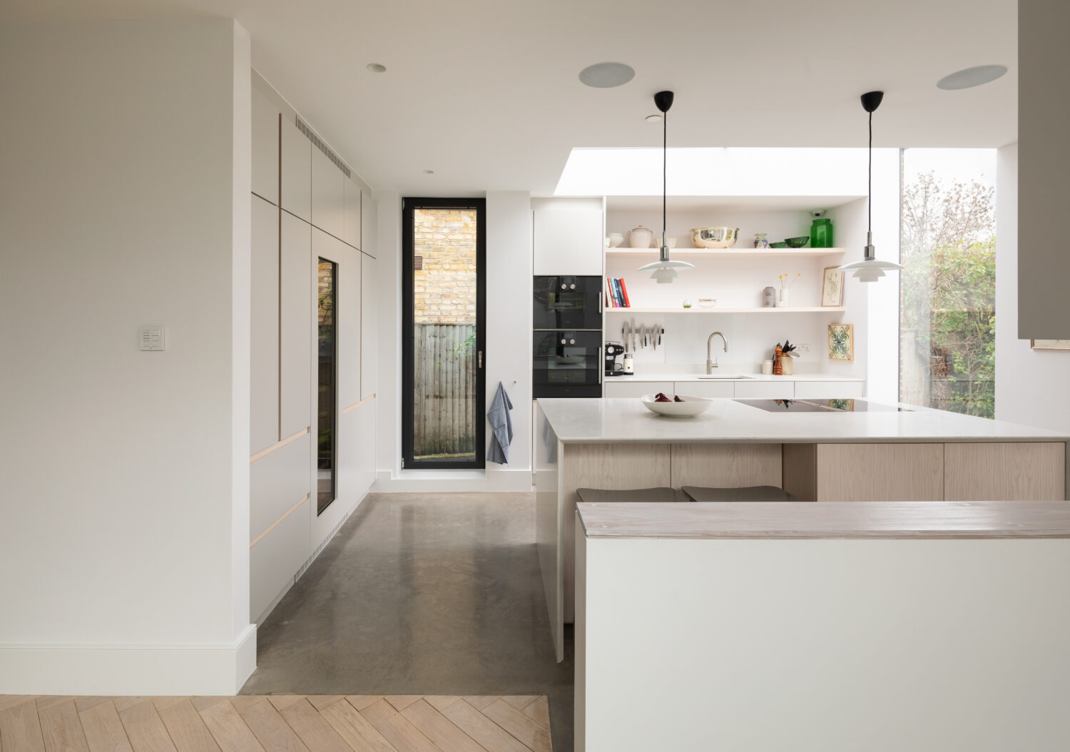 Within the Courtyard House, Shape worked with the Architect and Client to create a modern and elegant, family-friendly home. We utilised a light material palette of muted colours and white-washed Oak and Ash to enhance the already plentiful natural light of each space, creating a beautiful, contemporary urban oasis.