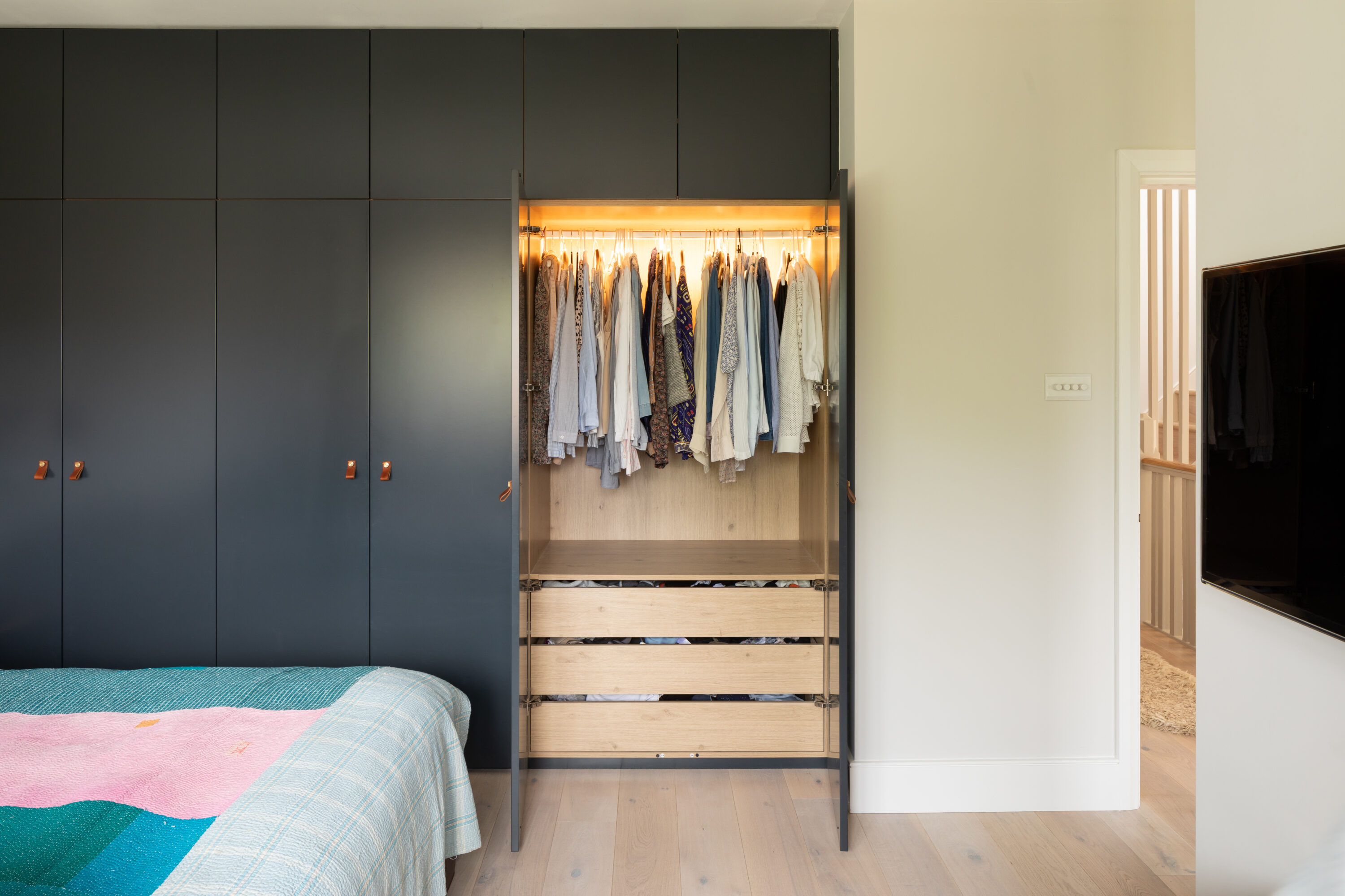 Integrated door sensors ensure that the contents of the wardrobes are illuminated when opened, utilising LED hanging rails.