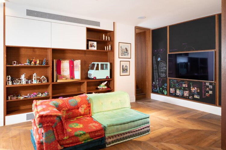 In the Etch House, we worked with directors Joe and Lizzie from Fraher and Findlay to create the perfect bespoke pieces for the playroom of their family home. They developed the concept design alongside their two children and let them decide on the feature colours for each floor of the house, and so we were working with a child led “green” brief.