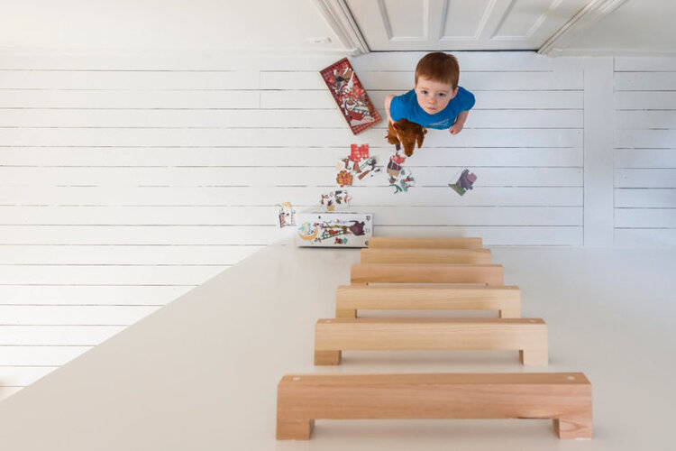 In this Australian new build, MUSK Architecture studio ensured each space invites adventurous play, by scrapping traditional internal configurations in favour of tree-house like fitted joinery, creating playful mezzanine levels throughout.