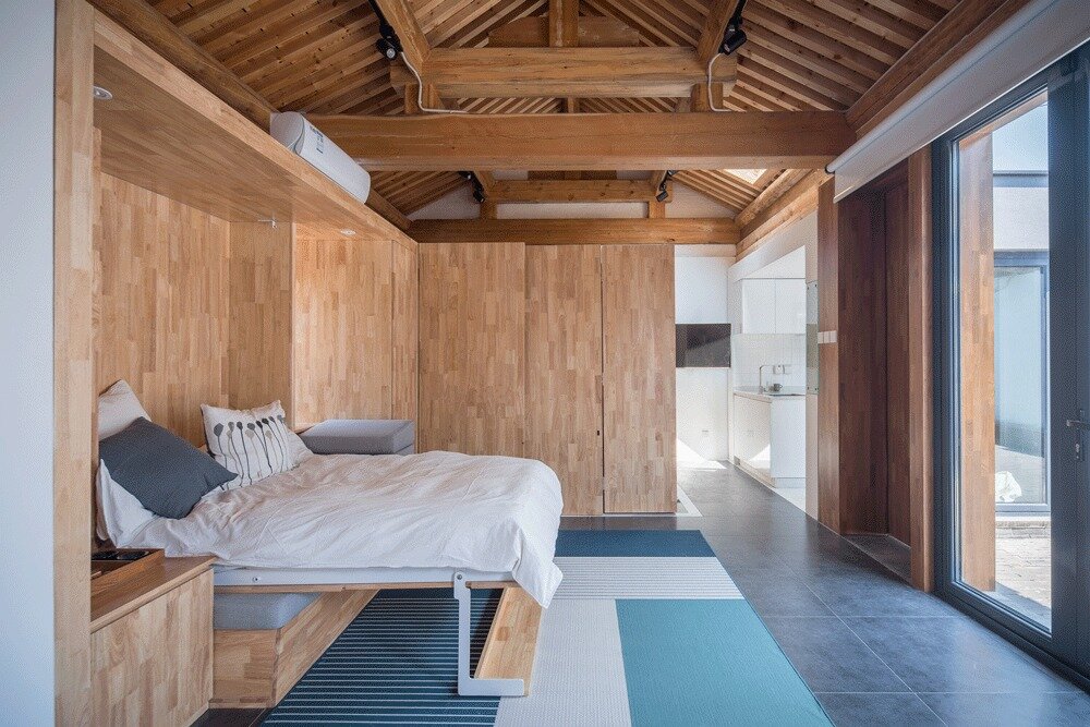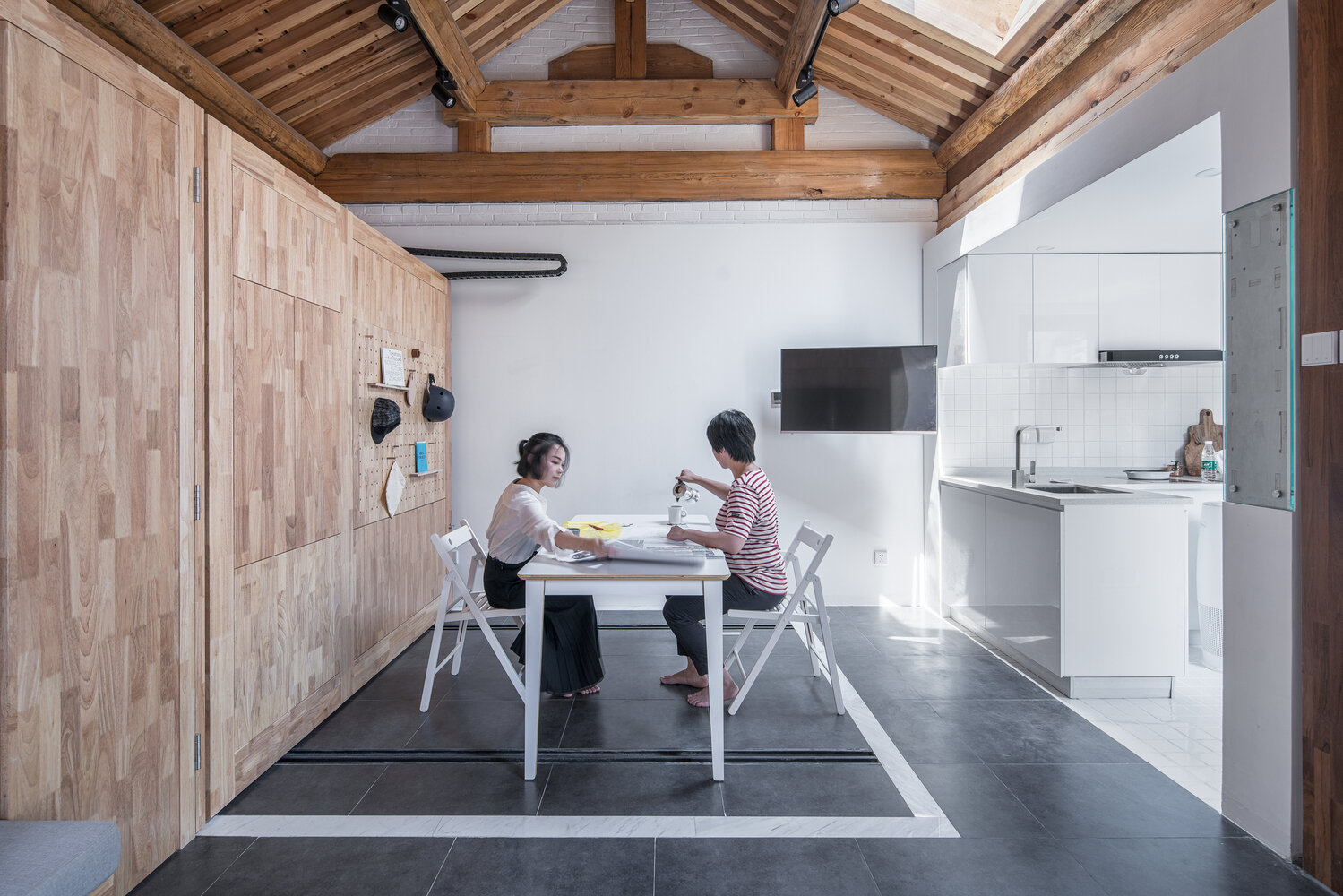 dot Architects created this ‘house of the future’ for their client, an innovative tech company, on a tiny plot of land in Hutong, Beijing. Although the unassuming exterior does not give much away, the tiny interior layout is cleverly designed to adapt to a variety of uses throughout the day; transforming from a 3 bed house, to a living space, to a shared office space, to hosting a dinner party over the course of one day.